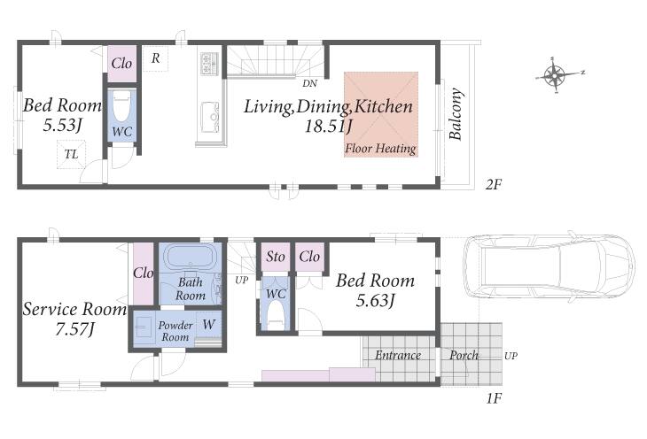1階の奥は7.57畳あるサービスルーム。寝室やスモールオフィス、キッズルームなどにお使いいただけます。大きなウォークインクローゼットもあるので、ドレッシングルームにもおすすめです。