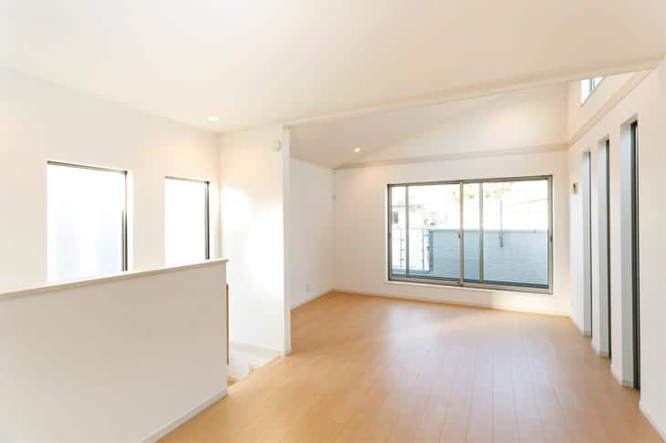 2階は18.51畳の抜け感のあるLDK。仕切りがないので、どこにいても家族の気配を感じることができます。内装をすべてホワイトで統一し、床材に軽やかなミルベージュを合わせたことで、すっきりと広がりのある空間に。