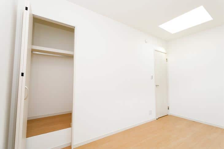 キッチンの奥は天窓と2つの窓から光を取り込める5.53畳の主寝室。扉付きのクローゼットがあるので、余計な家具を置かずに、ホテルライクなベッドルームに。照明やアートを飾って、自分らしい空間をつくりあげて。