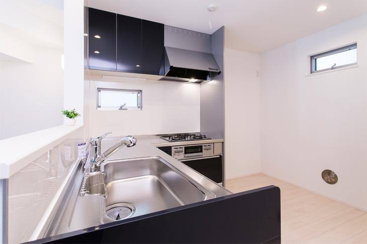 対面式で、ゆったり使えるL字型キッチン。