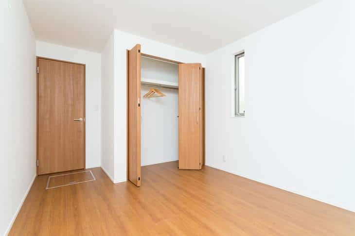 2つの寝室と1つのサービスルーム、計3つの部屋はすべて1階に。6.61畳の主寝室は、両観音開きのクローゼットが付いています。高級感のある明るいブラウンのフローリングや建具が、落ち着きのある空間を演出。間接照明などを取り入れた、ホテルライクな寝室コーディネートにもぴったりです。