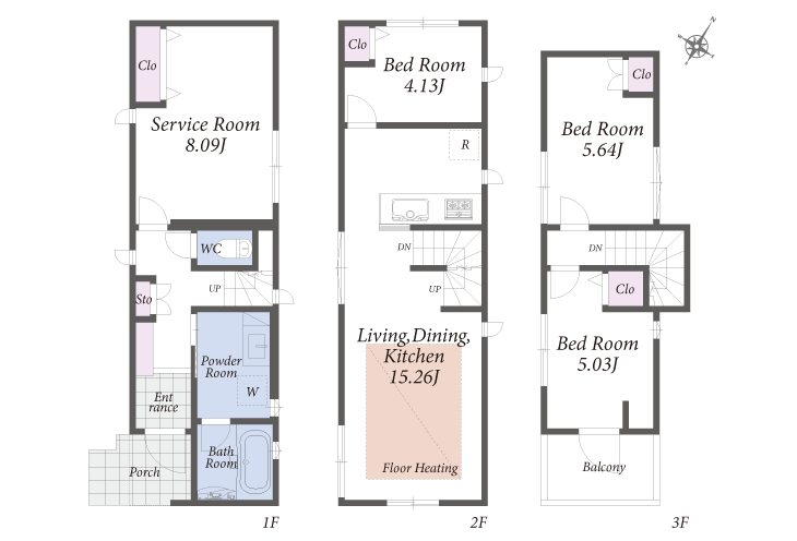 3駅からアクセスできる新宿区の家は、都心にありながら、驚くほど静かな住宅地に建っています。土地を有効に活用した3階建ての家は、採光も十分。爽やかな風が抜けるバルコニーからは、高い都心の空が広がります。