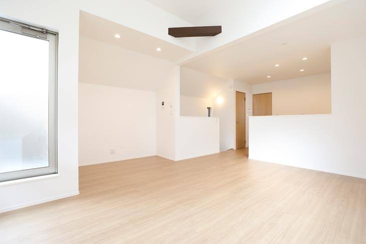 リビング・ダイニングの階段横には、勾配天井の低い部分を生かして、少し奥まった個性的なスペースを設計。テレビ台を置いたり、ソファを置いたり、お好みやライフスタイルに合わせて、インテリアコーディネートを楽しめます。