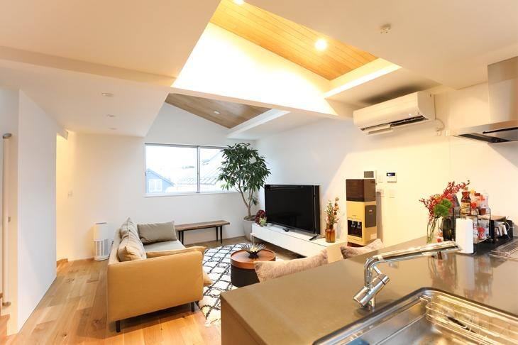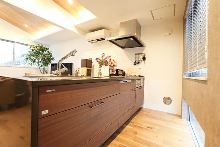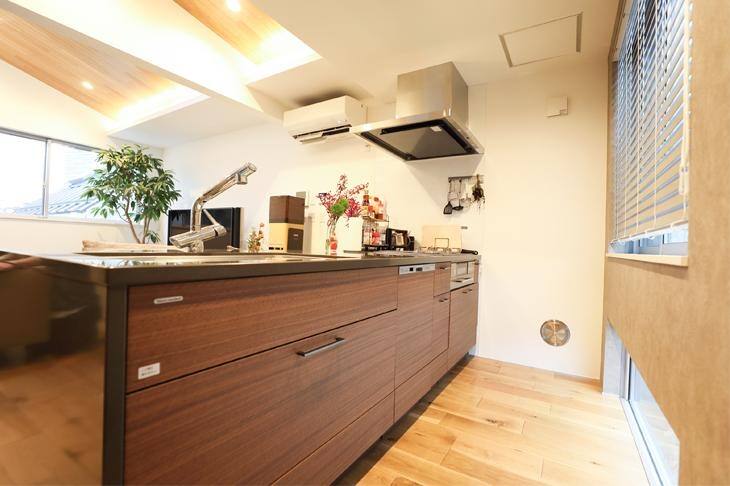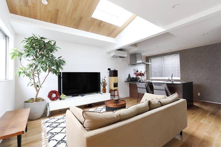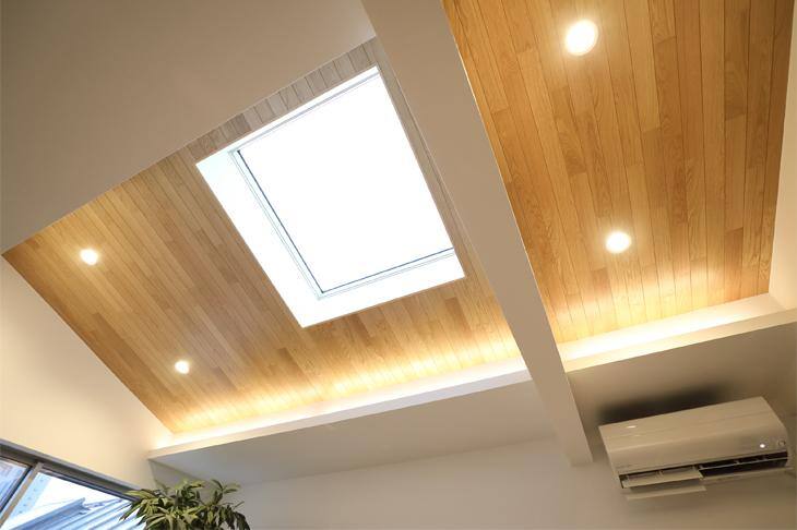 ふだんからインテリアや家に興味があり、雑誌やカタログで情報収集をしていたというM様。気に入った家の写真を設計士に見せて、何度も打ち合わせを重ねました。休日の居場所ともいえるのが3階のLDK。つねづね「3階にリビングを作るなら天窓は必須」と思っていたとか。オプションで採用した天窓と木目の効果で、イメージどおりに、明るく、開放感あふれるリビングに仕上がっています。