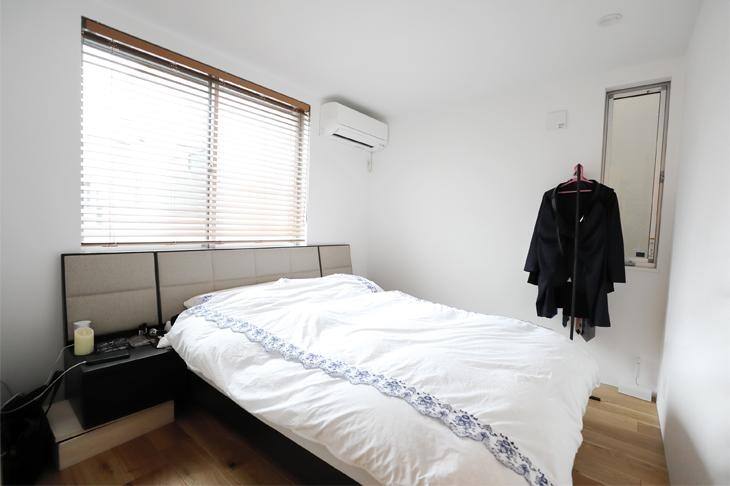 設計でM様がこだわったのは採光。近所のお宅が接近している中で、開放的な空間になるように依頼しました。昼間は不在なので、南向きにこだわらず、寝室の東側に大きな窓を設けました。朝日を浴びて、爽やかに1日がはじまります。サニタリーは、オプションの設備を採用し、シティホテルのような高級感のある空間に。オーバーヘッドシャワー水栓でシャワーを浴びれば、1日の疲れも吹き飛びます。