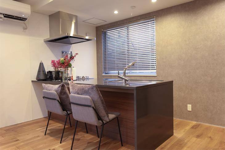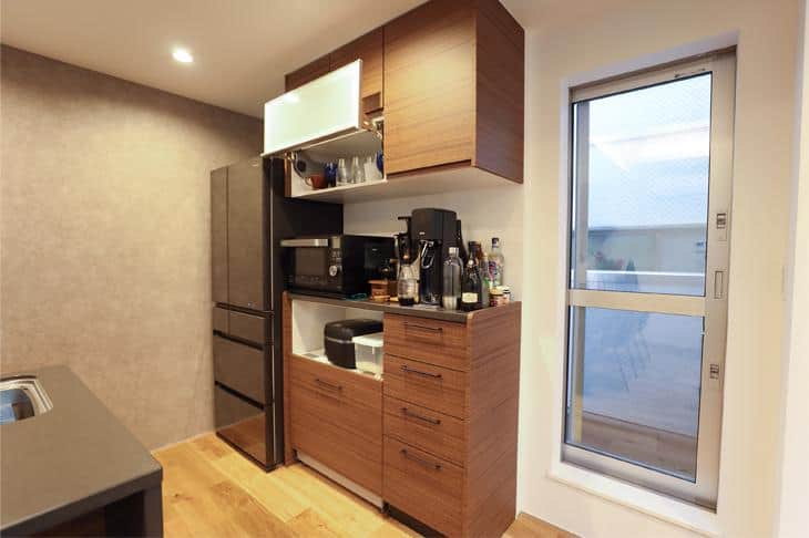 カフェ風に憧れて、カウンターキッチンを採用。ダイニングセットがいらないので、リビングのスペースをゆったり確保できています。この家は都心から近く、オシャレなお店も多いため、お友だちがよく遊びにくるように。近県にお住まいのお父様も、何度も泊まりに来られたそうです。ご自身も、休日にリビングでくつろぐのが癒しの時間に。オンとオフで上手に使い分けて、都会的なライフスタイルを満喫されていました。