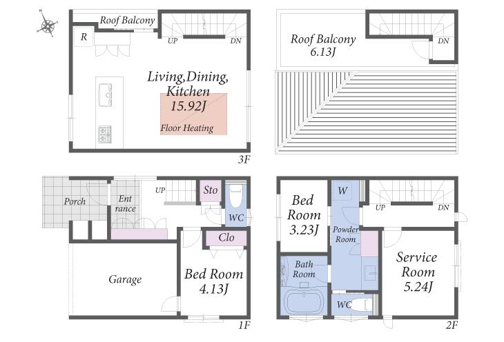 都心ながら落ち着いた環境と地下鉄が数駅使える好立地に建つM様邸。独身のM様がイメージしたのは、「2階でひとり暮らし」ができる家。ウィークデーは2階だけで生活できるように、主な設備をまとめました。3階のLDKでは、休日にホームパーティを開くなど、仲間たちとの楽しい交流の場になっています。