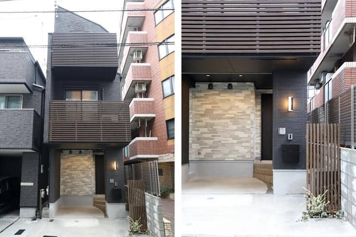 JR山手線の駅から徒歩約11分、私鉄駅からも徒歩数分というアクセスの良いエリアに建つI様邸。標準プランの間取りに手を加え、ご夫婦のこだわりが詰まった3階建ての注文住宅が完成しました。ダークブラウンとモノトーンをベースにしたスタイリッシュなインテリアが、心地良い時間を運びます。
