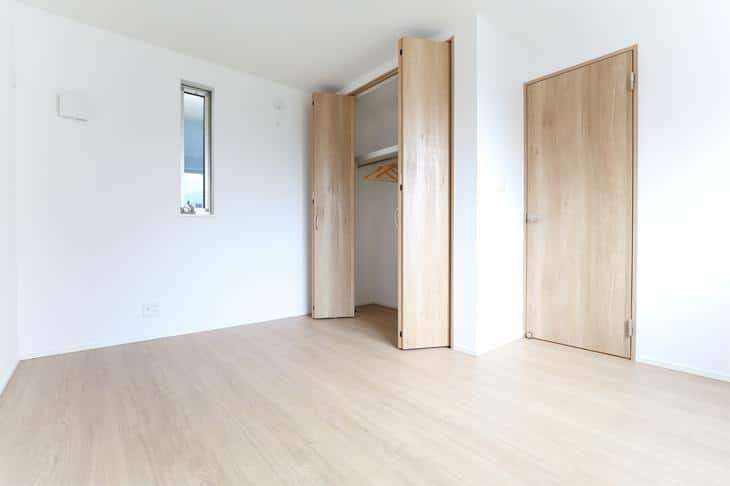 2階の奥の主寝室は、5.11畳。南向きなので、天気の良い日は気持ちの良い光が差し込みます。大きなクローゼットと造り付けの棚があるので余計な家具を置く必要がなく、広々と使えそうです。