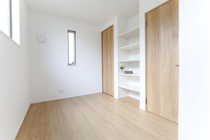 1階の奥のサービスルームは6.38畳とゆとりの広さ。東側と西側に窓を設けています。大きなクローゼットも設置されているので、ゲストルームや子ども部屋として活用できそうです。