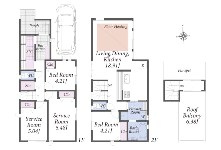 屋上には、6.38畳のルーフバルコニーを。洗濯物を干すだけでなく、アウトドア用のテーブルと椅子を置いてくつろいだり、夏には子ども用のプールで遊んだり。都会のマイホームに住みながら、大きな空を眺めるアウトドアタイムを楽しめます。