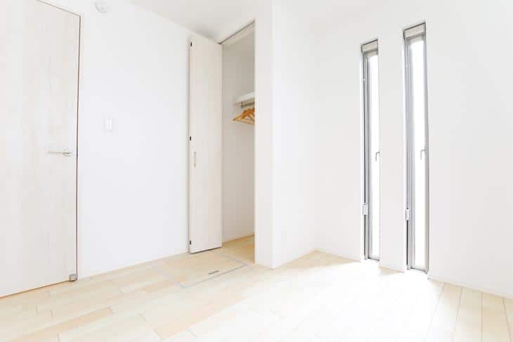 1階の寝室は、家具などのレイアウトがしやすい4.21畳の四角い空間。天井高まであるクローゼットを備え付け、寝室や書斎として使い勝手の良い空間です。開閉式の縦型スリット窓が、明るい光と心地良い風を呼び込みます。