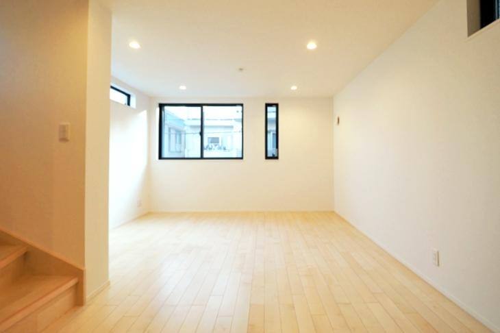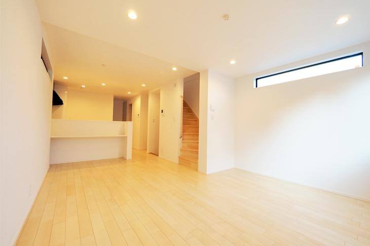南向きのLDKは広々とした18.5畳。東西にもそれぞれ窓があるので、1日中光を取り込むことができます。また、上り下りの階段がリビングに直結するので、家族が自然と集まります。
