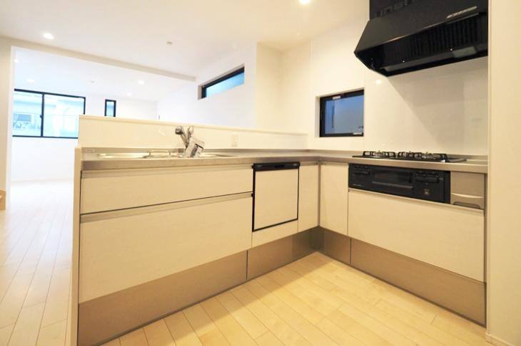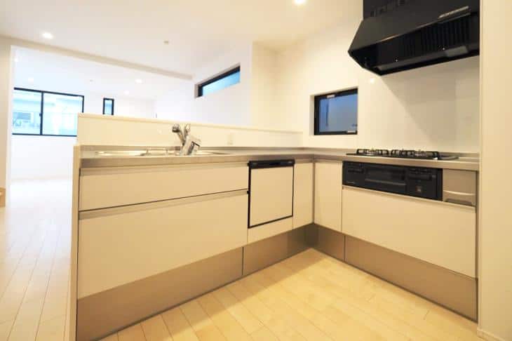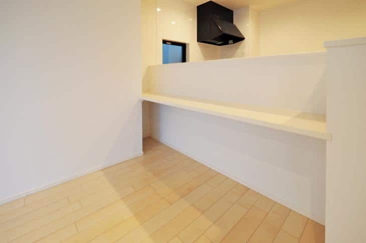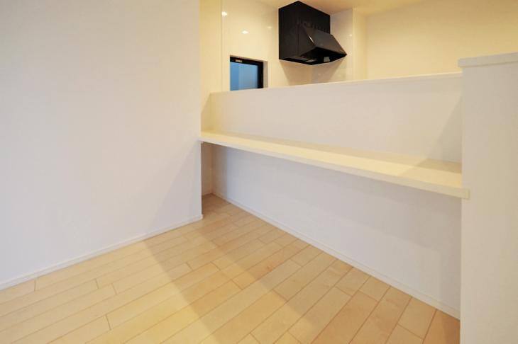 対面式のキッチンにはカウンターが備え付けられています。ホームパーティーのときは軽食やお酒を飲むバーカウンターに、お気に入りのものを飾れば自分好みの雰囲気のリビングに、夕飯を作りながらお子様の宿題を見ることができるワークスペースにもすることができます。