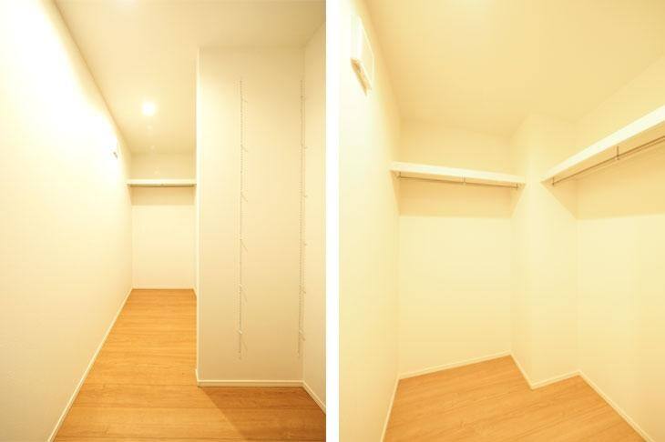 約2.7畳の広々としたウォークインクローゼットは、洋服をかけるスペースだけでなく棚付き。バッグやスポーツ用品など思いのままに収納することができます。