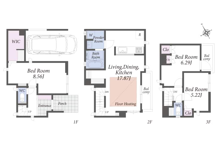 木目調のアクセントが映える、白壁をベースにした、シンプルでスタイリッシュなデザインの外観。8.5mと間口の広く取れた東向きの家には、朝日が全てのお部屋に差し込み、爽やかな1日の始まりを向かえることができます。