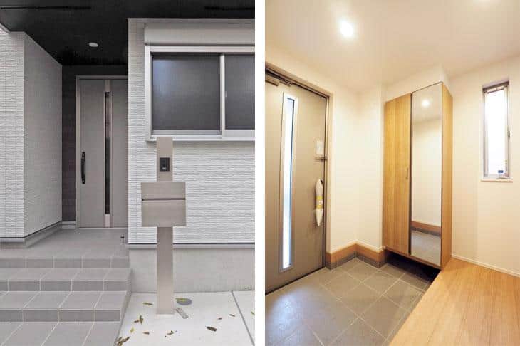玄関の扉を開けると明るいエントランスが。大人2人が並んでも、靴の履き脱ぎが十分にできるスペースがあるので、たくさんゲストが来た際も安心です。シューズクローゼットは高さもあるため、スッキリとした見た目ながらたくさん収納できます。