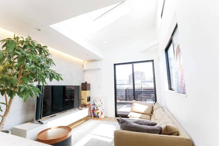 都心にも近く、落ち着いた雰囲気が気に入って、ここに家を建てたいと思ったM様。気になったのは「細長い敷地」でした。「逆転の発想で、その細長さを感じさせない設計にすれば良いと思ったんです」と語ります。そのために2つの工夫を取り入れました。1つ目は「スペースを区切ること」。