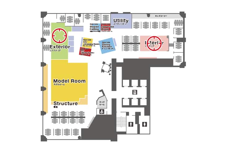 - ここまでマイホームづくりに直接関連するものを見て回りましたが、次回は実際にショールームでご相談いただくときの打ち合わせのブースや、1階にある体験展示場をご案内します!