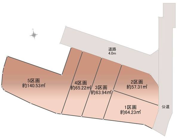 東3m(2区画のみ・公道)・北東4m(私道)