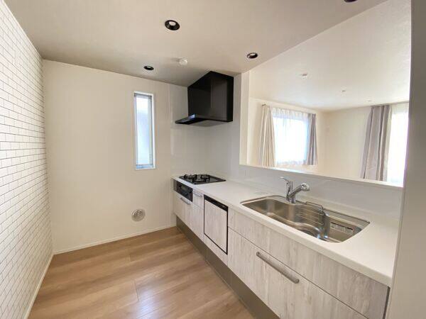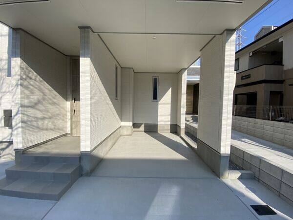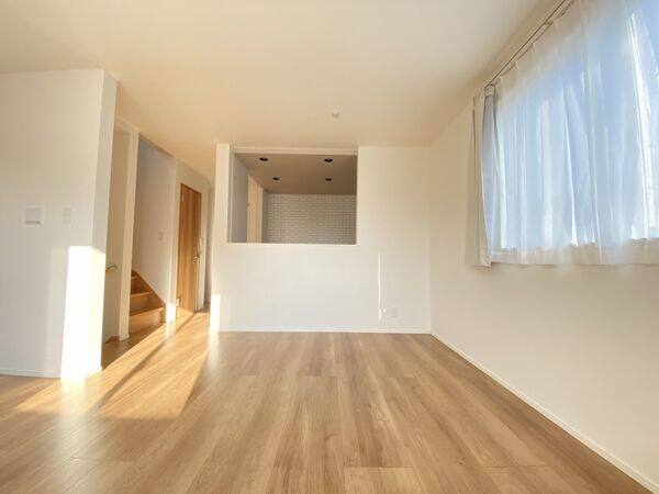 LDKはゆとりある17畳超。お車1台駐車可能。7m公道に面した住宅です。