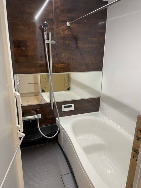1坪サイズのバスルームには浴室乾燥機付。LDKは広々18畳超の私邸です。