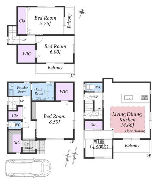 全居室収納付きでお部屋スッキリ。4LDK+カースペース付きの私邸です。