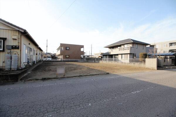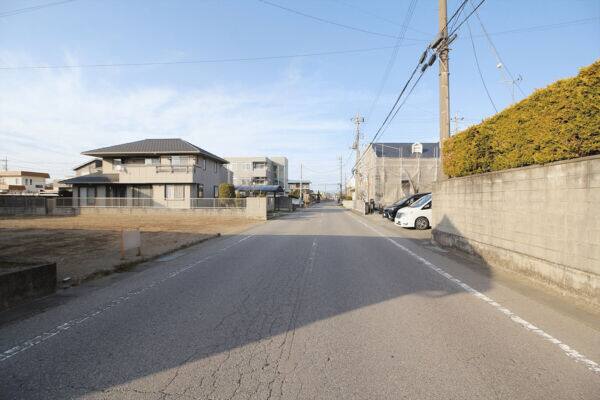 前面道路8mの開放感のある売地です。建築条件なしのため自由に設計可能。