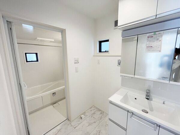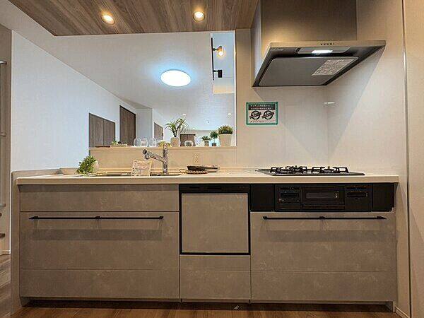 前面道路6m以上/LDK18畳以上(5号棟のみ)/LDK15畳以上(4号棟のみ)/吹抜け(4号棟のみ)/1階にリビング/システムキッチン/対面式キッチン/食器洗乾燥機/浄水器/浴室乾燥機/浴室1坪以上/シャワー付洗面台/トイレ2ヶ所/温水洗浄便座/鏡付シューズボックス/TVモニタ付インターホン/タッチキー/床暖房/アクセントクロス/網戸/複層ガラス/並列駐車2台以上可/2駅2線以上利用可/都市ガス/公共水道/公共下水