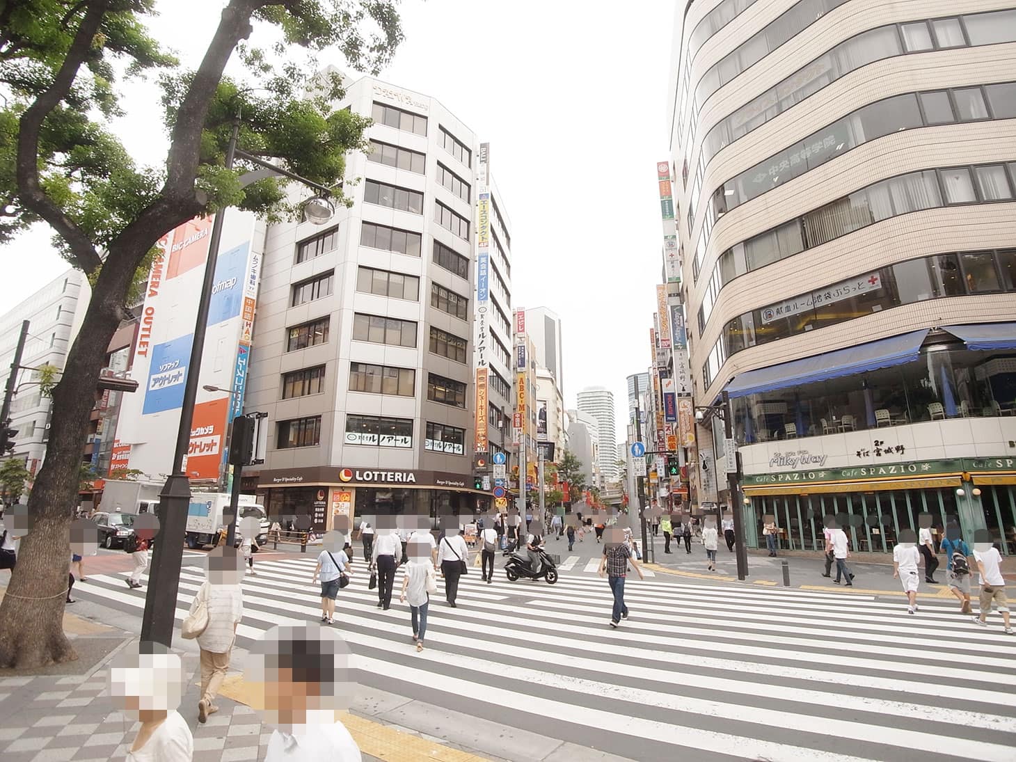 東口を出ると、このような風景です。信号を渡り、サンシャイン60方向へお進みください。
