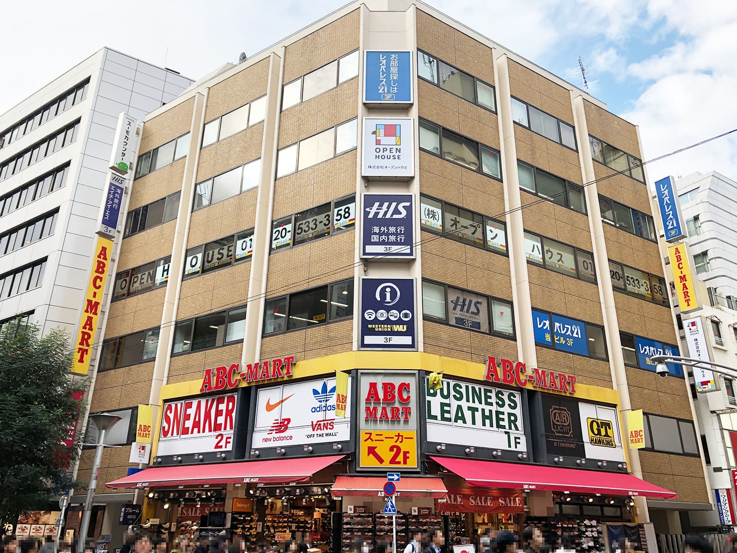 少し歩くと左手にABCマートが見えてきます。このビルの4階が当社池袋営業センターです。