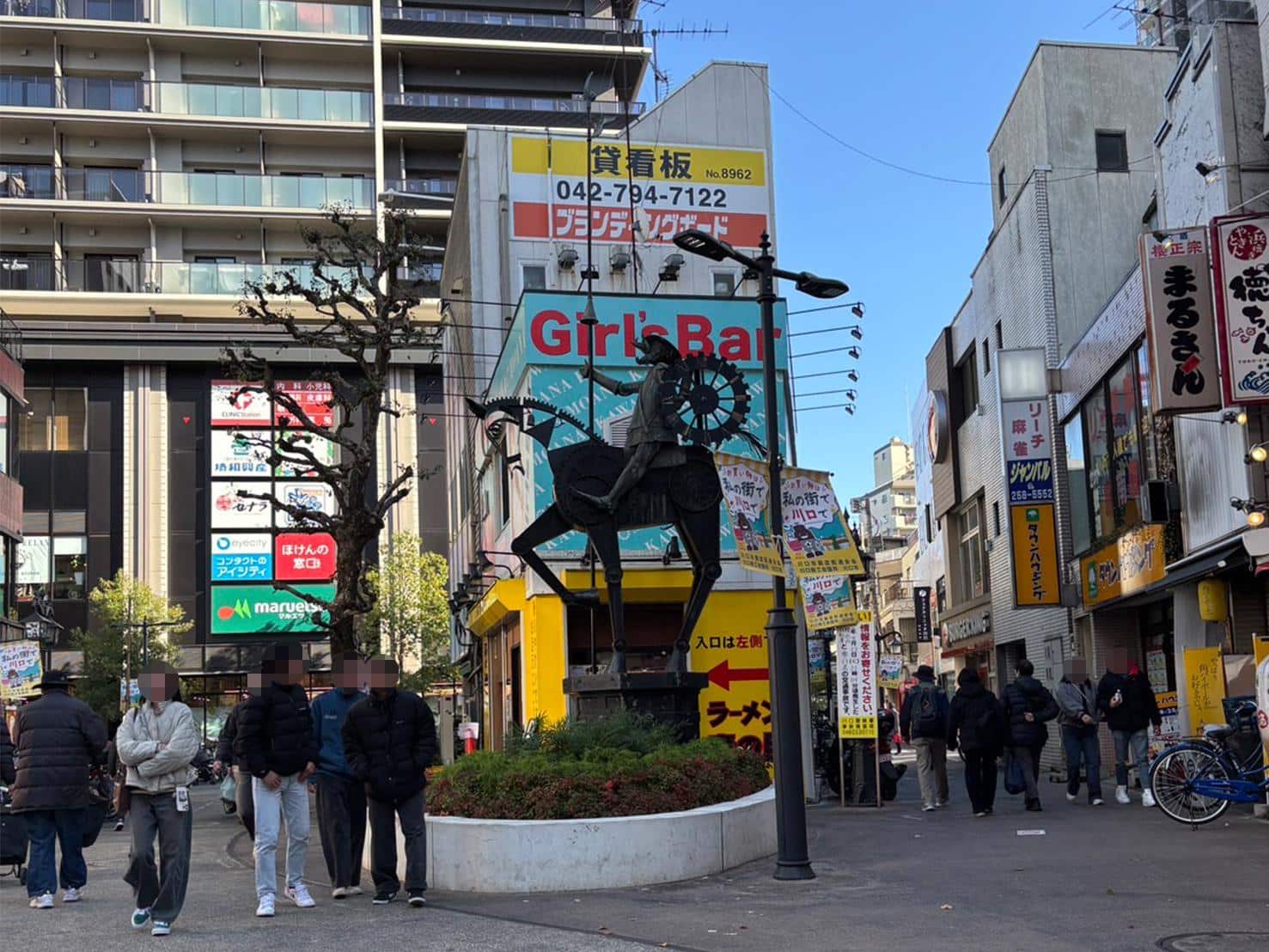 ドン・キホーテ像が見えてきます。像を挟んで左右に道が分かれますので、右側の道へ進んでください。